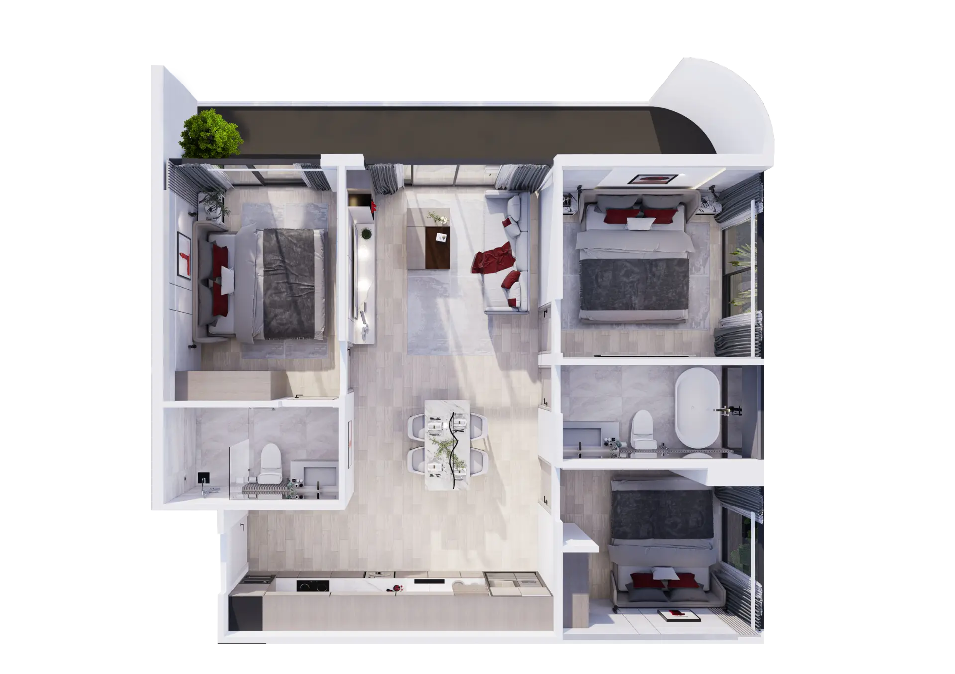- Полностью меблированные квартиры с техникой и декором — всё включено